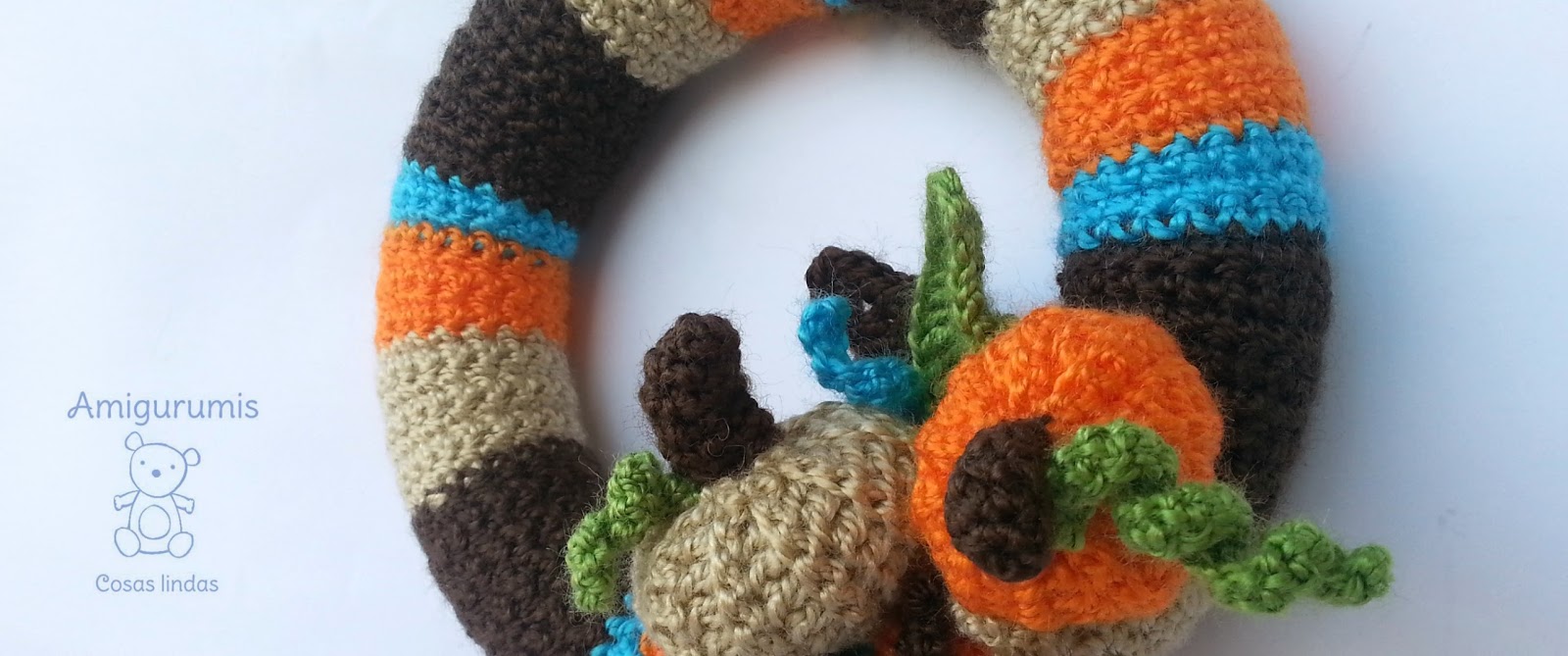 De esta forma busque ideas que me atraparan y deseara tejer y me ayudo algunas orientaciones que Xandra nos propuso a través de su blog. Encontré una corona para decorar nuestra puerta y darle la bienvenida a esta maravillosa fiesta.